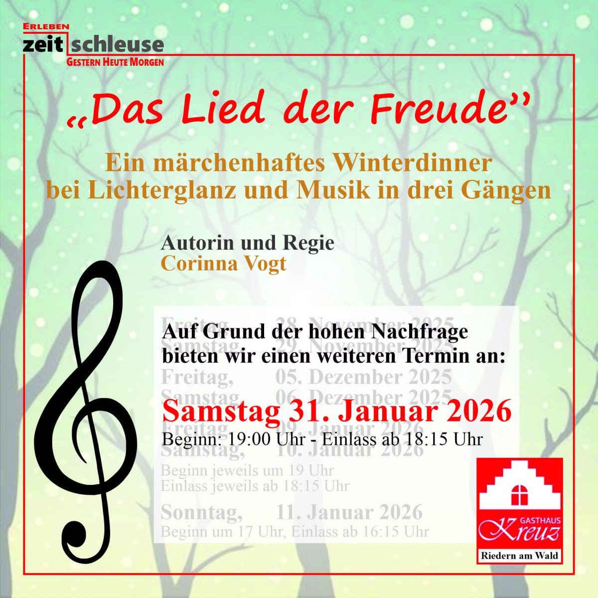 Lassen Sie sich überraschen, verzaubern und begeistern beim märchenhaften Winter-Krimi-Dinner im Gasthaus Kreuz!